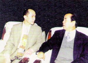原全國(guó)人大副委員長(zhǎng)盧嘉錫同志與董事長(zhǎng)李浪輝親切交談?lì)}詞