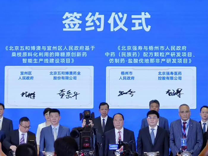 廣西強(qiáng)壽藥業(yè)集團(tuán)與梧州市人民政府在本次研討會(huì)共成功簽約兩個(gè)項(xiàng)目。