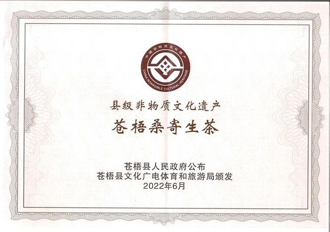 喜報!蒼梧桑寄生茶制作技藝榮獲縣級非物質(zhì)文化遺產(chǎn)項目