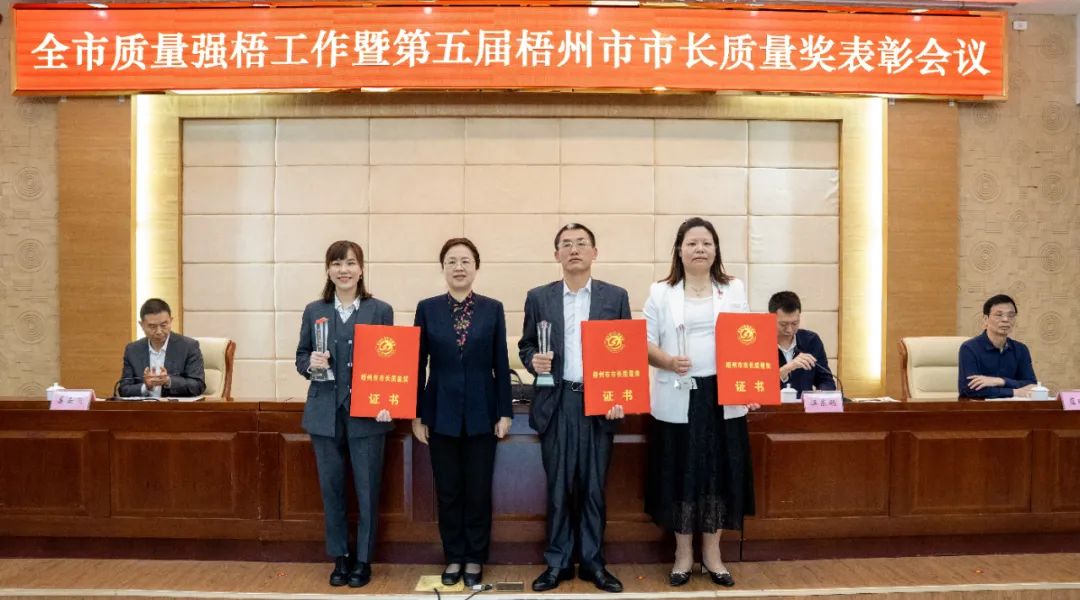 市長質(zhì)量獎是梧州政府設(shè)立的最高質(zhì)量榮譽!受國務(wù)院特殊津貼專家、集團董事長李浪輝委托,副總經(jīng)理唐專通代表集團參加會議并登臺領(lǐng)獎。