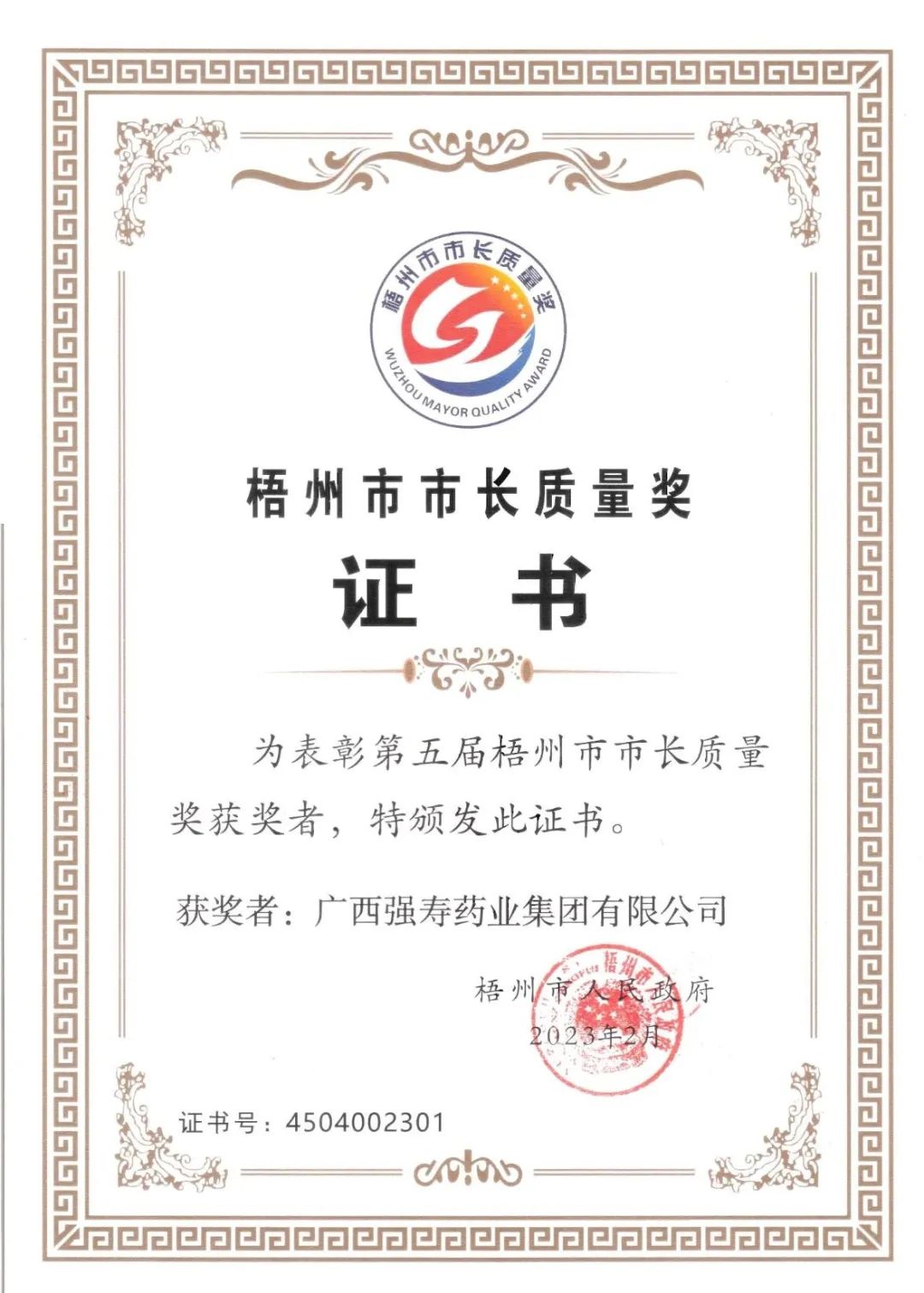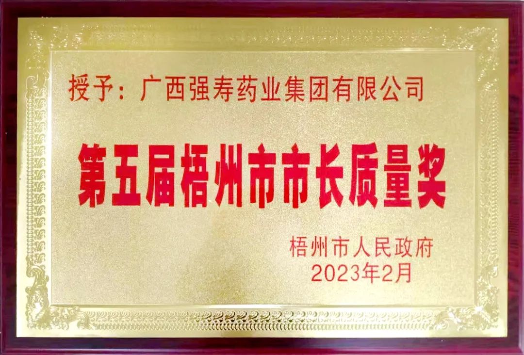 【喜訊】熱烈祝賀強壽集團榮獲第五屆梧州市市長質(zhì)量獎